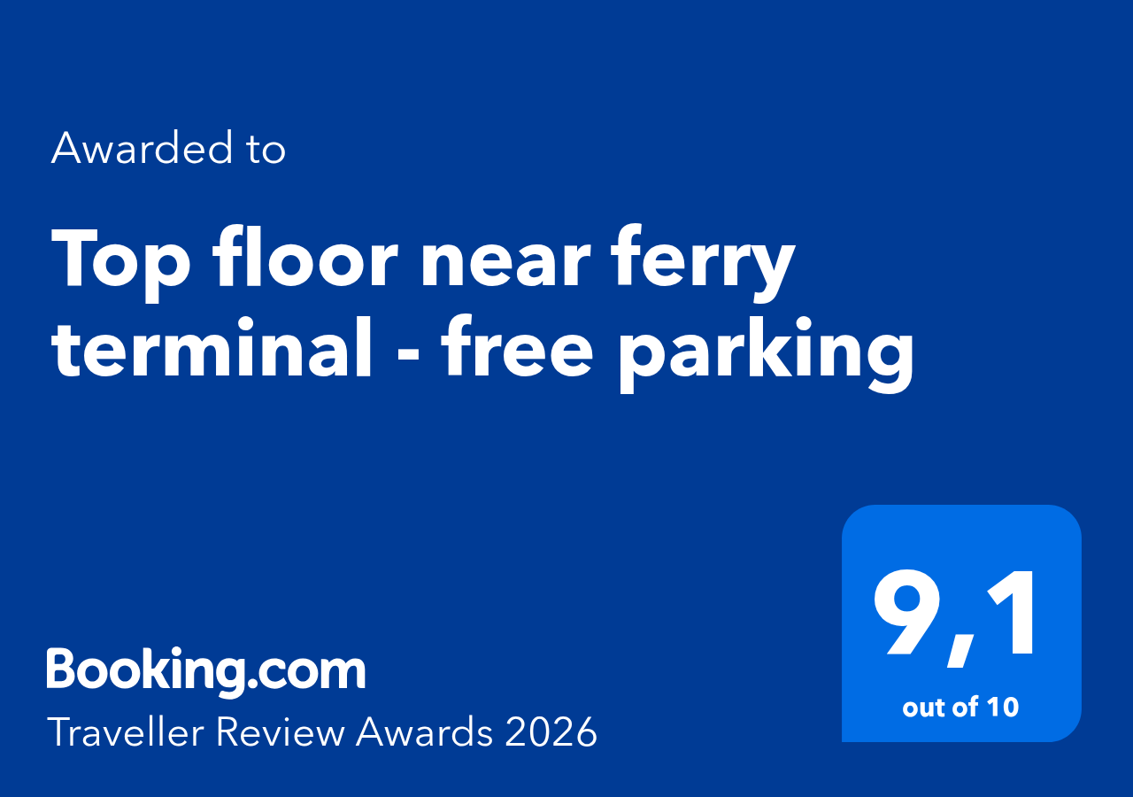 Check-in at Top floor near ferry terminal - free parking is from 16:00, and check-out is until 10:00.